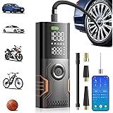 Tire Inflator Portable Air Compressor – Smart APP Air Pump for Car Tires, All-in-One Storage Portable Tire Pump for Car, 3X Speed & Automatic Stop Inflation, Cordless Tire Pump for Car, Motorcycle, Bicycle, Ball